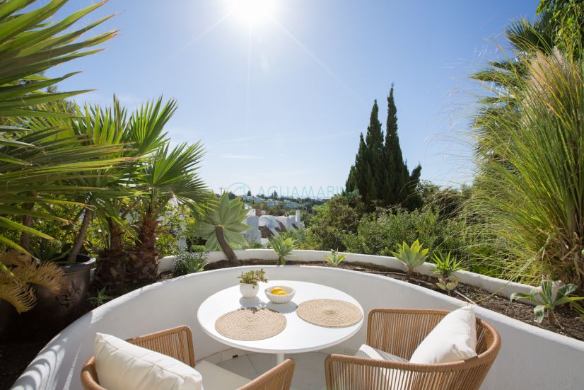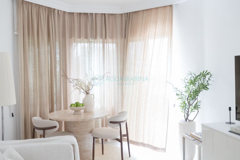 Located in one of the most exclusive areas of Marbella, just a few minutes from the prestigious Roman Bridge, this cochet one bedroom apartment combines comfort, style and tranquility in a privileged setting. Located in the coveted gated urbanization of Ancon Sierra Fase IV, with 24 hours security, it offers access to three stunning swimming pools, one of them heated and all with salt water, surrounded by lush mature gardens that invite relaxation.