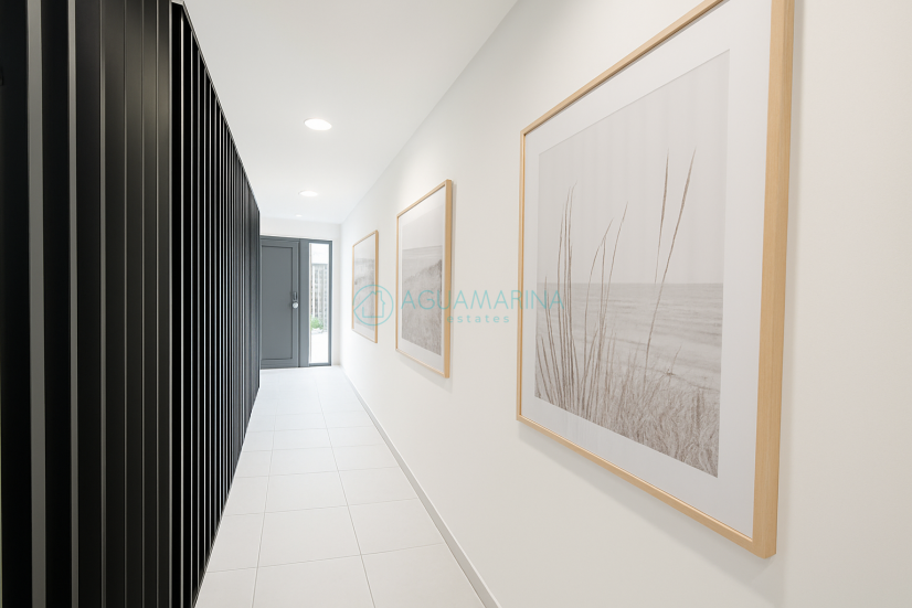 La vivienda ofrece un diseño contemporáneo con un amplio salón-comedor y cocina de concepto abierto, con grandes ventanales que dan acceso directo a una terraza de aproximadamente 20 m², ideal para comer al aire libre, relajarse o disfrutar del clima mediterráneo.